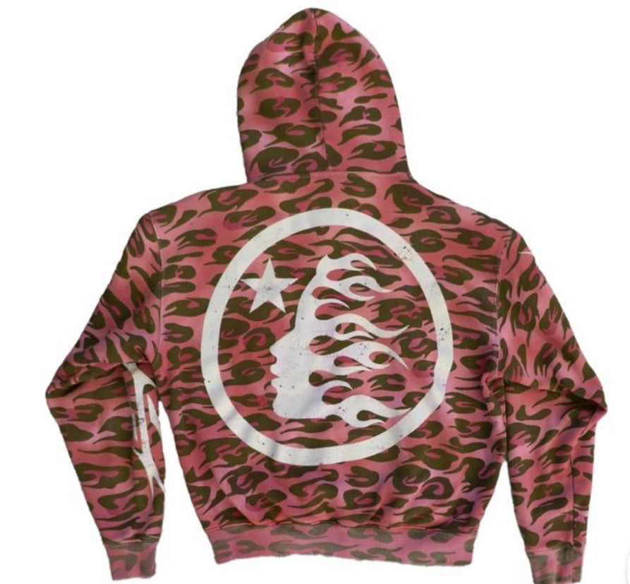 Hellstar Cheetah Zip Up Hoodie Red
